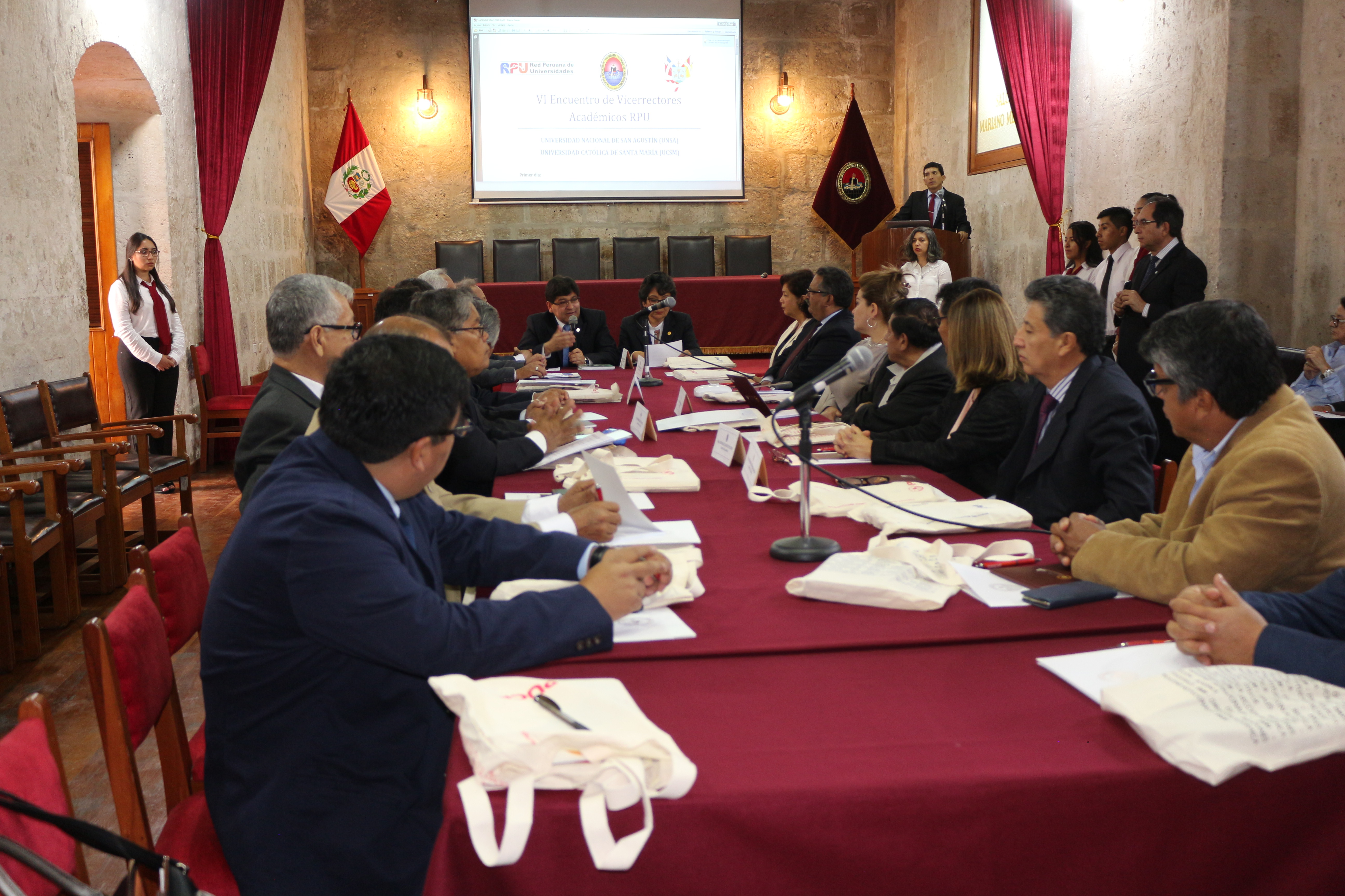 Con el objetivo de fortalecer y compartir experiencias para lograr la excelencia académica, la Universidad Nacional de San Agustín de Arequipa se convirtió en sede del VI Encuentro de Vicerrectores Académicos de la Red Peruana de Universidades – RPU donde participan 22 representantes de diferentes Casas de Estudios Superiores Públicas y Privadas sin fines de lucro del país.
