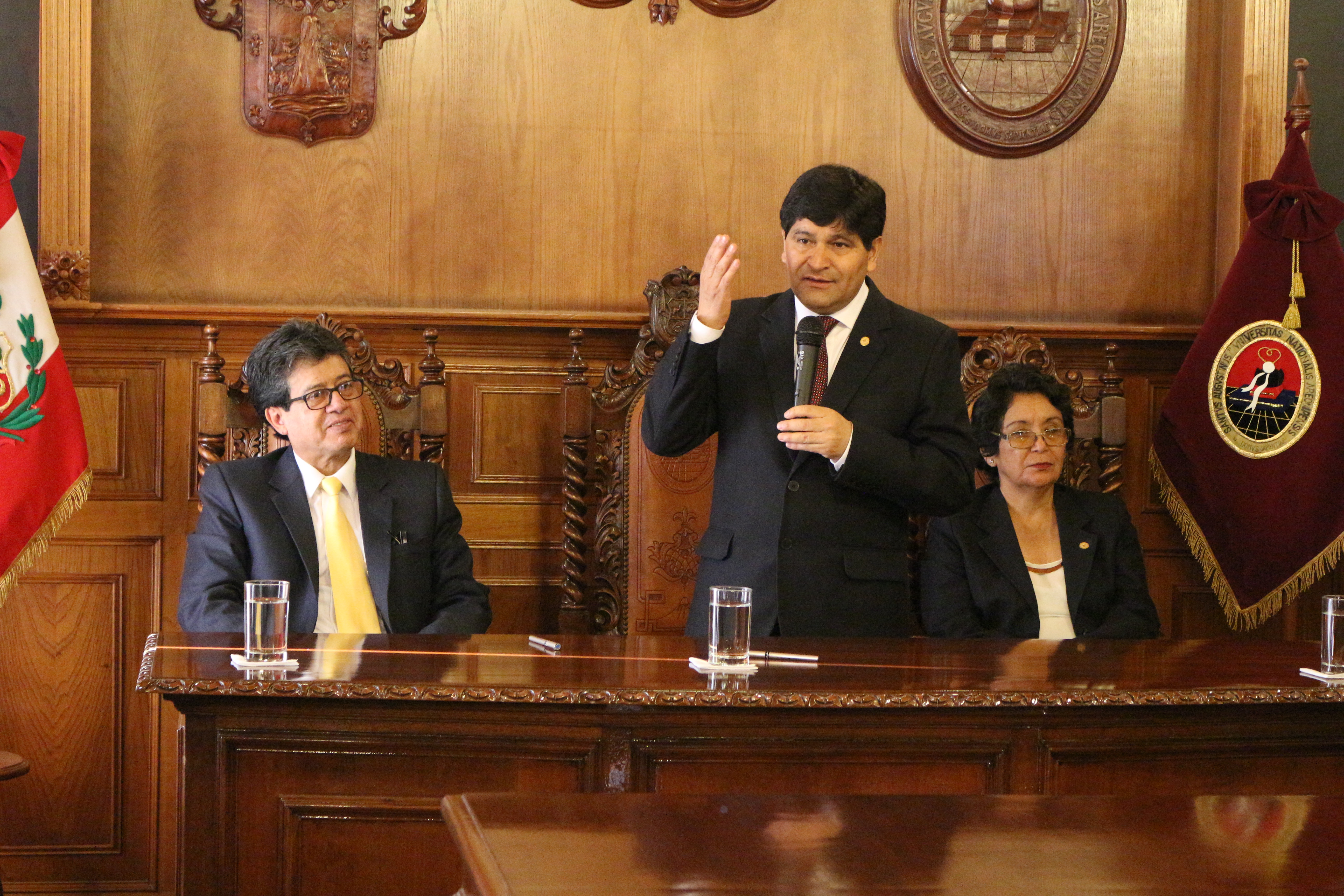 Importantes acuerdos suscribió el Rector de la Universidad Nacional de San Agustín de Arequipa, Dr. Rohel Sánchez Sánchez, con el Presidente de la Corte Superior de Justicia de Arequipa, Dr. Carlo Magno Cornejo Palomino, que beneficiarán a ambas partes en la capacitación profesional y estar a la vanguardia en temas legislativos.