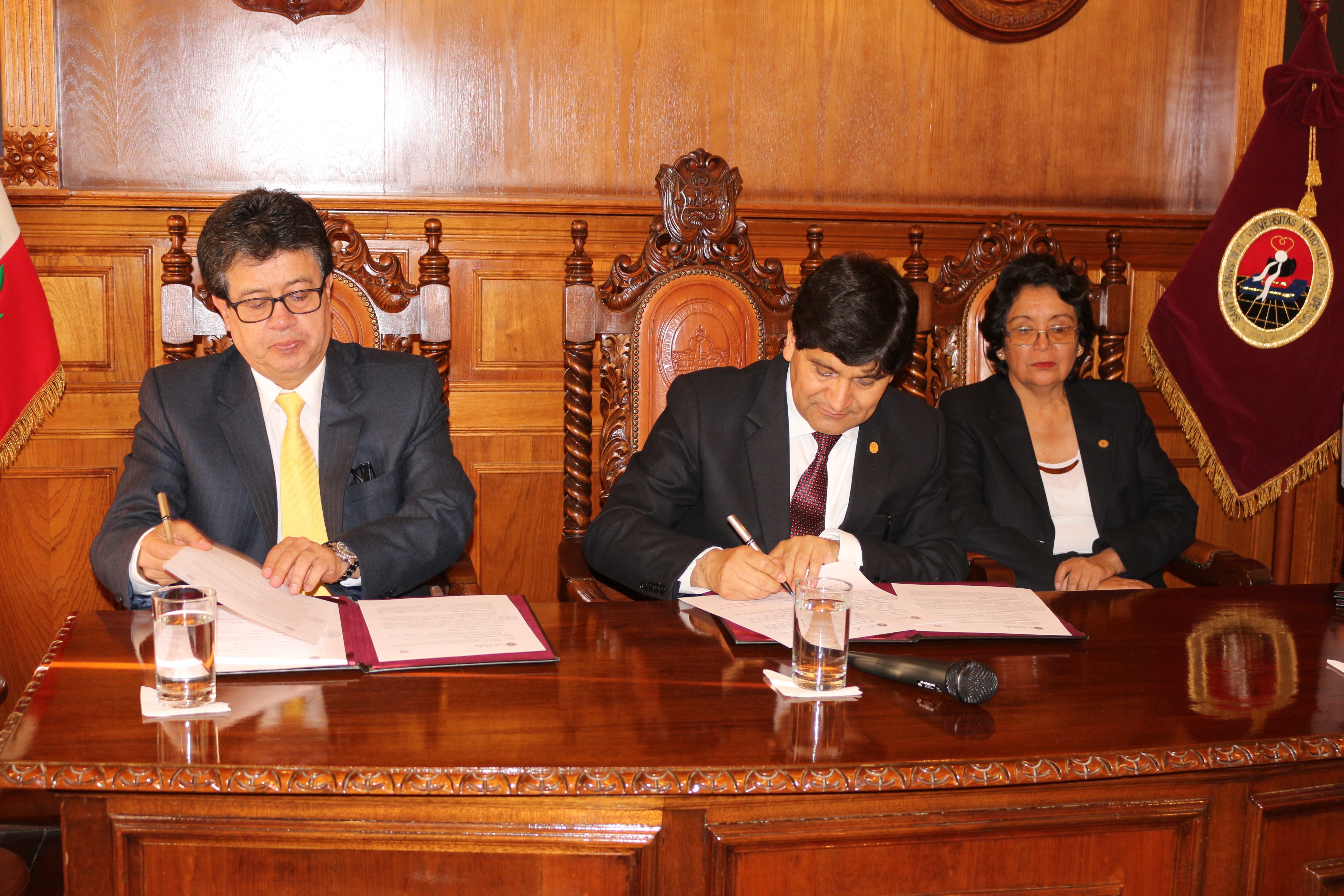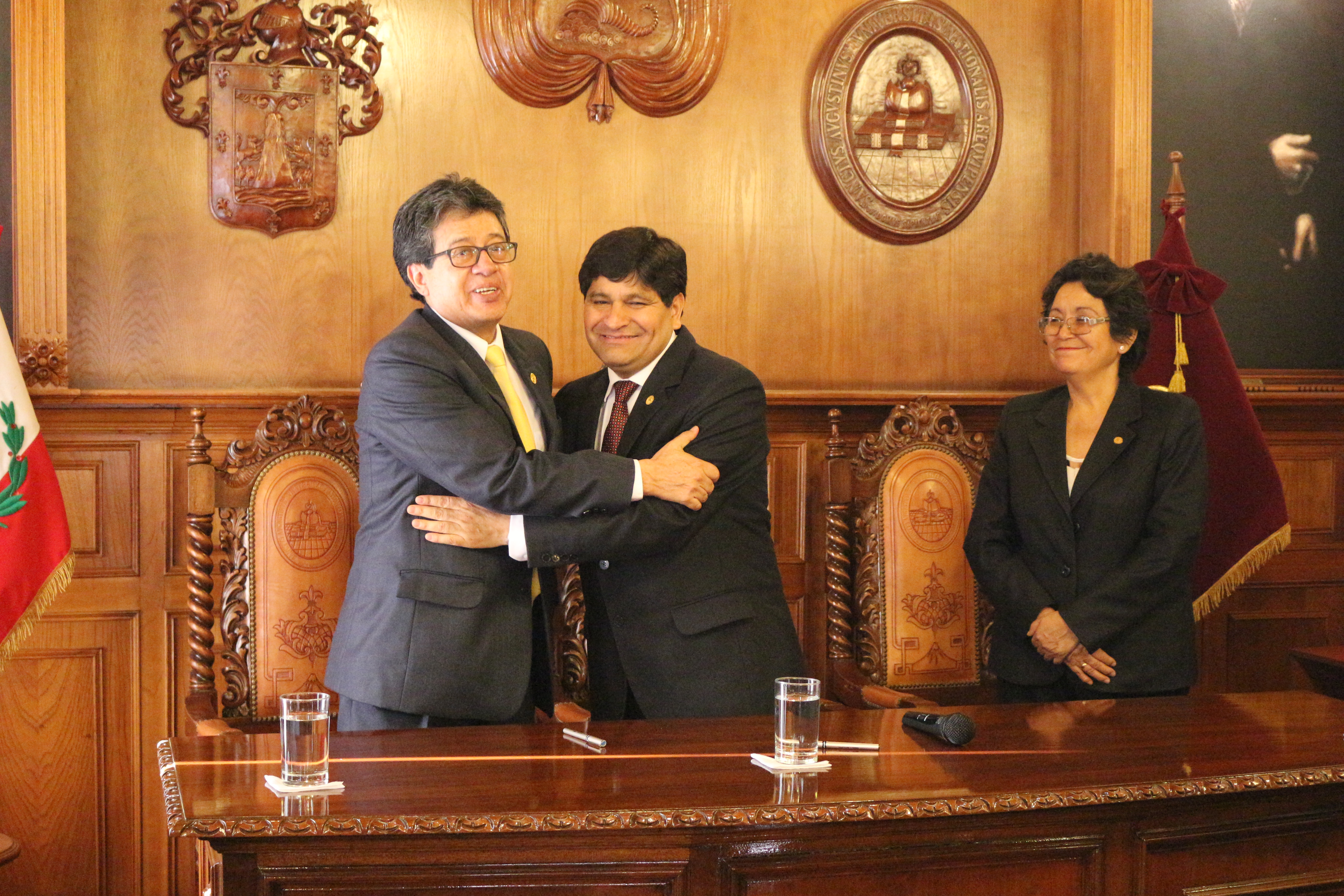 Importantes acuerdos suscribió el Rector de la Universidad Nacional de San Agustín de Arequipa, Dr. Rohel Sánchez Sánchez, con el Presidente de la Corte Superior de Justicia de Arequipa, Dr. Carlo Magno Cornejo Palomino, que beneficiarán a ambas partes en la capacitación profesional y estar a la vanguardia en temas legislativos.
