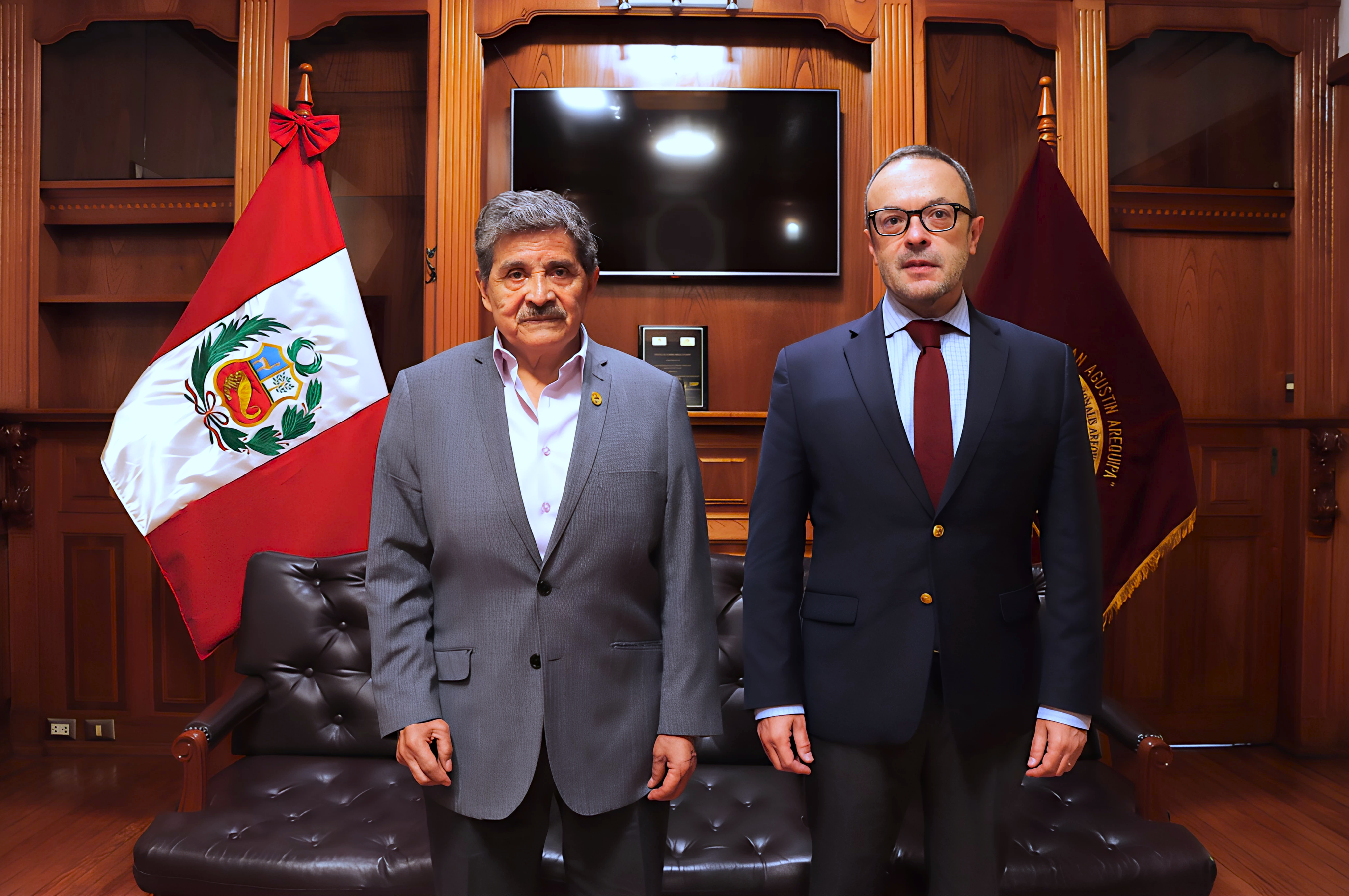 Con esa perspectiva, el cónsul general Jorge A. Iglesias Mori visitó el Rectorado de la Universidad Nacional de San Agustín de Arequipa (UNSA) para saludar y establecer un primer acercamiento con sus autoridades, siendo recibido por el rector, Dr. Hugo José Rojas Flores. Durante el encuentro, se expresó el interés en facilitar convenios entre universidades chilenas y la UNSA, abriendo posibilidades de intercambio para estudiantes y docentes.