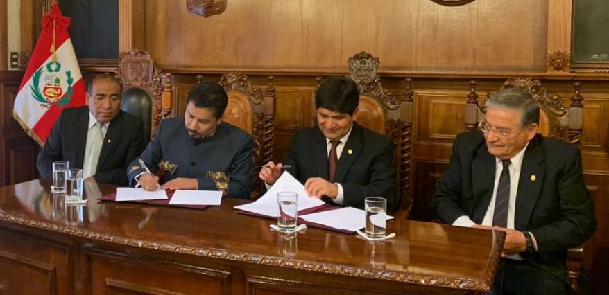 La Universidad Nacional de San Agustín de Arequipa, representada por el Dr. Rohel Sánchez Sánchez y el Gobierno Regional, presidido por el Arquitecto Elmer Cáceres Llica, suscribieron un convenio marco que beneficiará a los profesionales de las gerencias regionales, quienes recibirán una formación continua y podrán acceder a segundas especialidades, maestrías y doctorados.