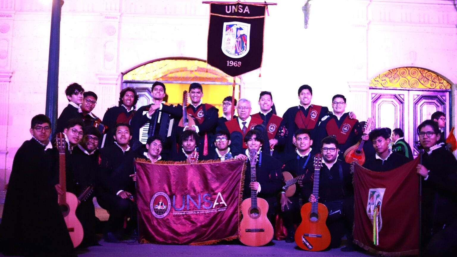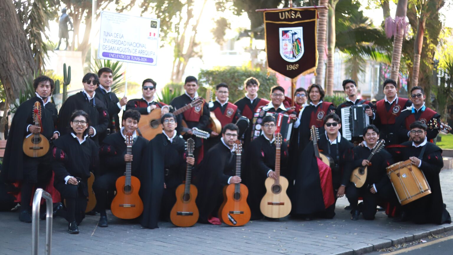 La Tuna Universitaria San Agustín de la Universidad Nacional de San Agustín de Arequipa (UNSA), adscrita a la Unidad de Promoción de Arte, Cultura, Deporte y Recreación del Vicerrectorado Académico, destacó una vez más por su maestría interpretativa durante el Encuentro Internacional “Bodas de Oro de la Tuna Jorge Basadre Grohmann”, celebrado en la ciudad de Tacna.