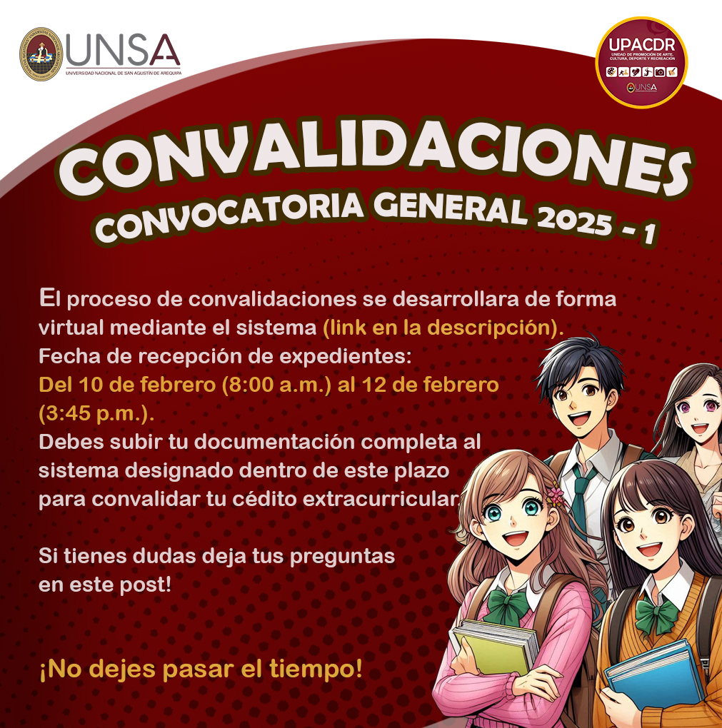 ¿Listo para convalidar tus créditos extracurriculares? 🎓 La convocatoria para el proceso de convalidación 2025-1 ya está en marcha. Aquí te compartimos toda la información que necesitas para participar: