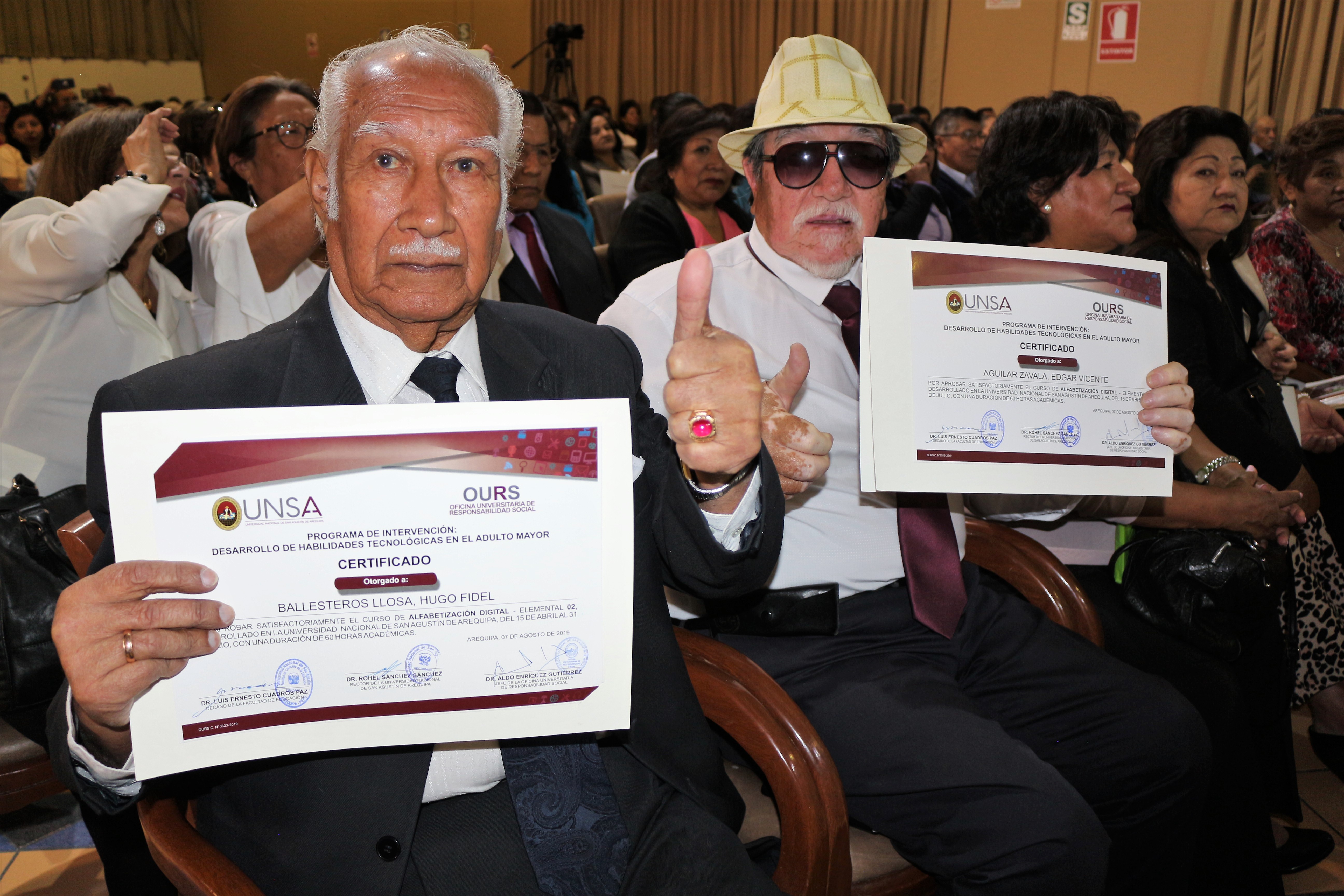 “Todo el emprendimiento en Responsabilidad Social que la Casa Agustina está desplegando es objeto de nuestra felicitación. Es una apuesta por la inclusión, porque esta ceremonia de clausura además de dar certificación a 1700 adultos mayores, nos ha permitido ser testigos de la orquesta Ensamble Agustino de personas con alguna discapacidad que han mostrado un espectáculo impresionante. No hay límite para el aprendizaje ni de tiempo ni edad ni de capacidades, es un derecho y para toda la vida, la UNSA está generando oportunidades para todos” resalto Andrade Pacora.