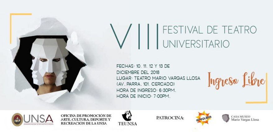 El Teatro Experimental de la Universidad Nacional de San Agustín (TEUNSA), junto a la Oficina de Promoción de Arte, Cultura, Deporte y Recreación de la UNSA, realizarán el VII Festival de Teatro Universitario, al celebrarse el 64 aniversario de creación del TEUNSA.
