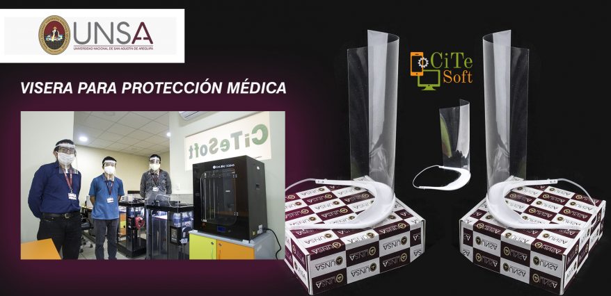 La Universidad Nacional San Agustín de Arequipa pone a disposición del grupo médico de la región 100 unidades de viseras para la protección de su personal, el diseño original fue generado desde la comunidad «Coronavirus Makers» para ser rediseñada y mejorada en el laboratorio de CiteSoft de nuestra Universidad, la entrega de unidades de protección a cargo de la autoridad máxima de nuestra Universidad  Doctor Rohel Sánchez Sánchez, investigadores y demás colaboradores, es un esfuerzo más en el compromiso de ofrecer a la región soporte y respaldo en los problemas que afronta el país, como es el caso de la amenaza mundial  de propagación masiva del virus COVID -19.
